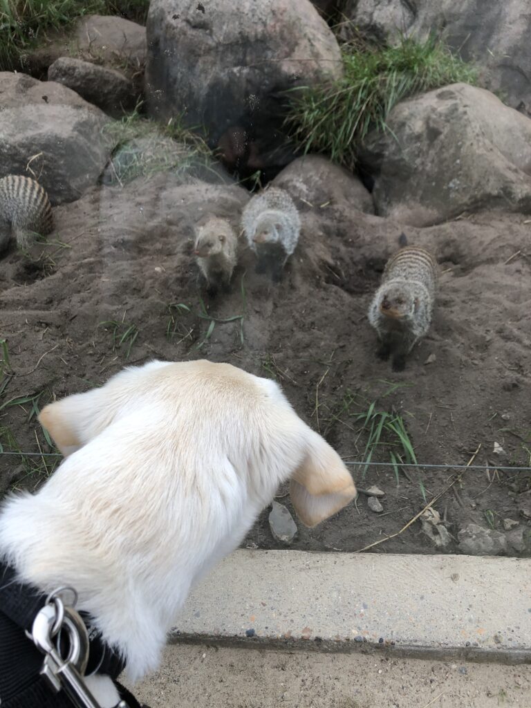 Det er altså virkelig svært at få nye venner, når de alle sammen er bag glas 🙁 Vildt uretfærdigt, de lignede virkelig at de gerne ville lege med mig! Så kunne jeg selvfølge lige hilse på de mange små og store tobenene 🙂 Men nogle af dem, skulle man altså undgå, for de havde fået mundkurv på 🙁 Håber jeg har mere held næste gang…..